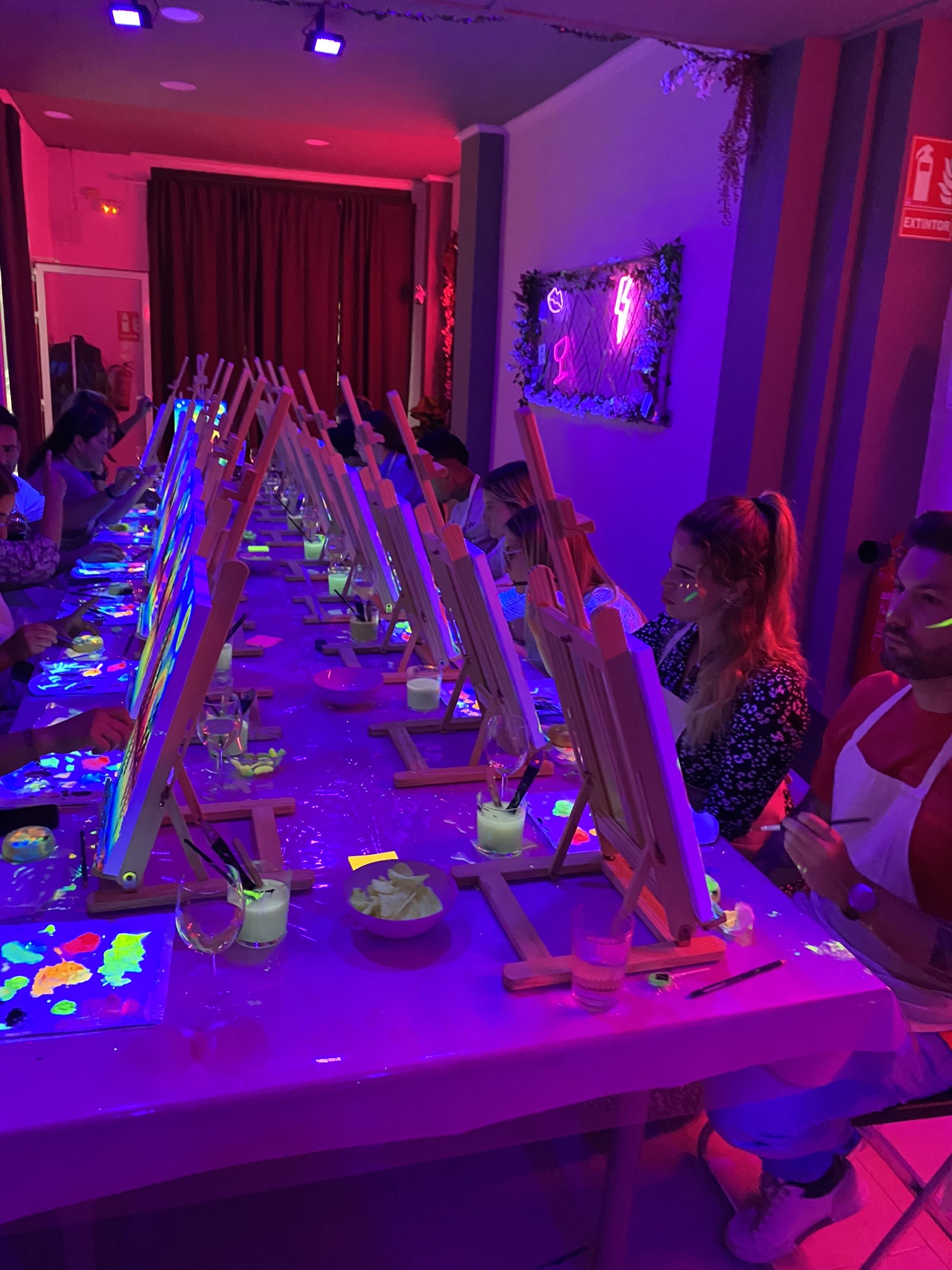 • Pintaremos con luz, creando obras vibrantes que cobran vida en la oscuridad.